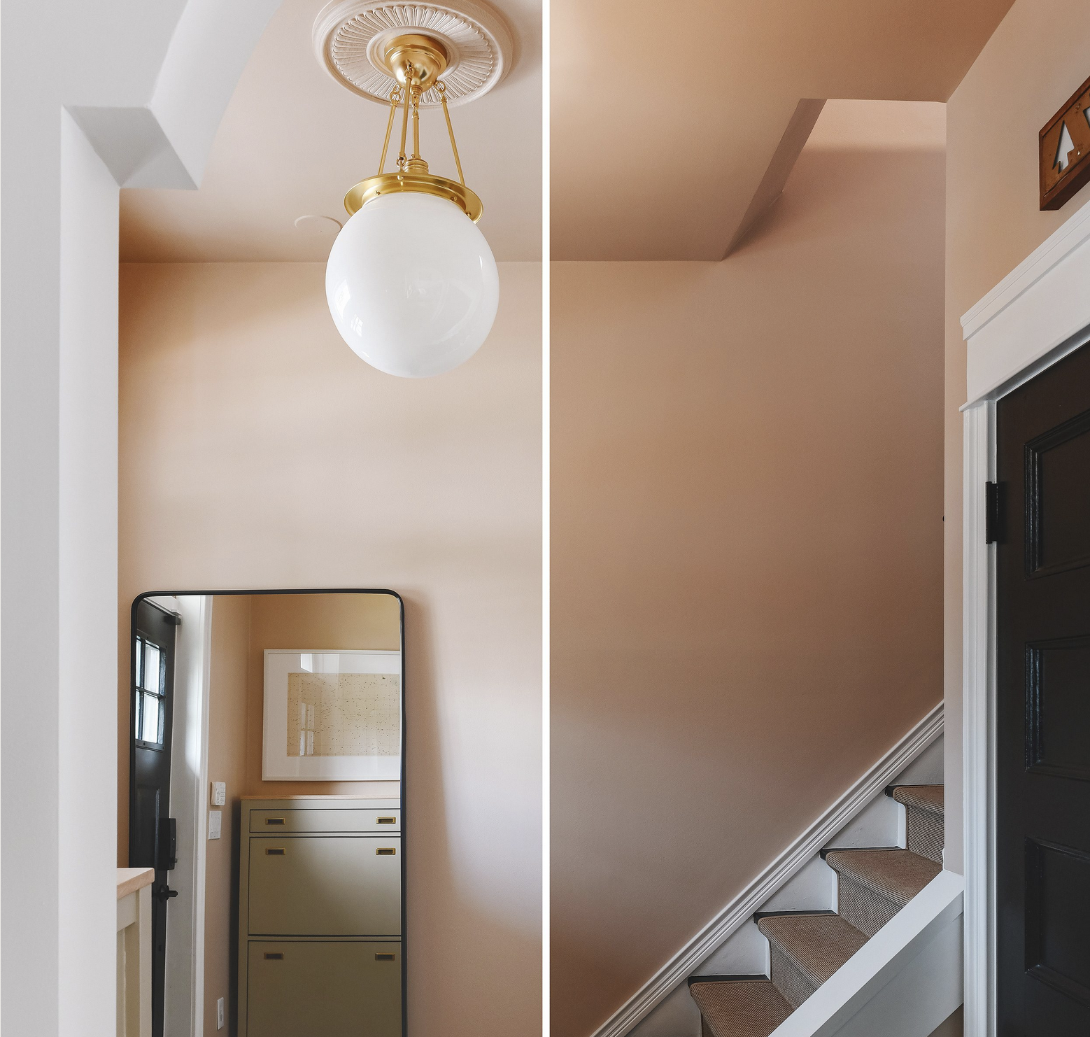 The most fundamental relationship in interior design is that of light and color. Remember that without light, color does not exist. There are two main factors that you need to consider when testing a paint swatch on the wall. First is artificial light. The color of the lighting within a room plays a big role in the shade of your color sample – it could present cool or warm, light or dark. The second factor is natural light. Paint swatches should be tested and sampled during morning, afternoon, and night and along with the artificial lighting. Seeing the color transition throughout various times of the day will allow you to get the full color experience and will help you avoid disappointment because trust me – that clay color that is super warm and complimentary to your earthy beige tones, will look pink in the sunset. These images courtesy of Yellow Brick Home are a perfect example of why it’s so crucial to fully test your paint swatch.